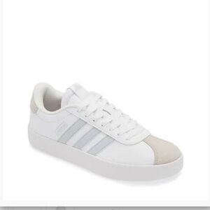 Classic Adidas shoes with a sleek design. Features white and light gray tones. Ideal for everyday style.