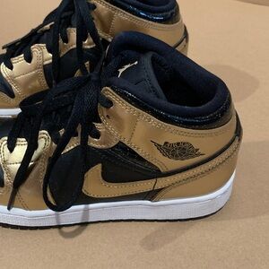Nike Air Jordan 1 Mid SE Metallic Gold Black sneakers SIZE 5 youth