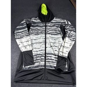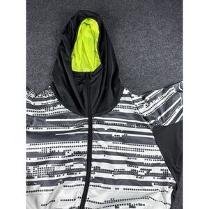 Adidas Hooded Windbreaker Jacket Mens Large Black White Pattern Full Zip