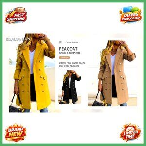 Wool Blend Double Breasted Midi Peacoat Trench Coat Women's Winter Coat