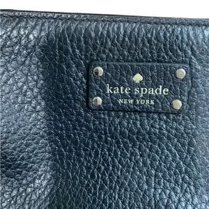 Chic and versatile, this Kate Spade black leather crossbody bag is perfect for any occasion. Crafted with attention to detail, it offers both style and functionality. No chips on metal just reflection from camera beautiful crossbody bag.