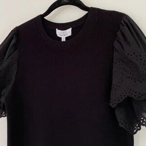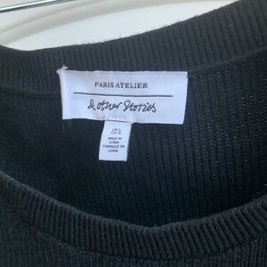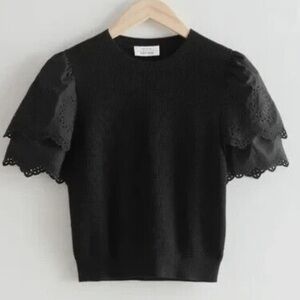 This chic black sweater top from & Other Stories features short sleeves with ruffled detailing, offering a sophisticated and fitted silhouette. Perfect for elevating your wardrobe, its elegant design is both versatile and stylish.