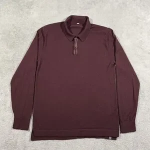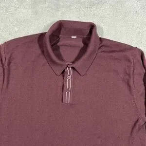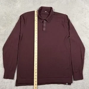 Lululemon Techwool Polo Shirt Mens Large Burgundy Long Sleeve Wool Blend