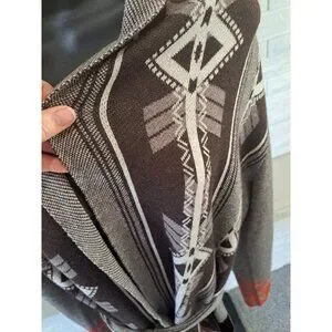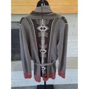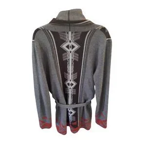 Native-Inspired Knit Cardigan Sweater Wool Blend Tie Patterns M. Rena Womens L