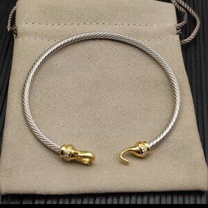 This stunning David Yurman bracelet features a sleek twisted cable design complemented by elegant gold-tone hook ends, some embellished with sparkling accents. Perfect for adding a touch of sophistication to any ensemble, this bracelet is a versatile accessory that effortlessly elevates your style.