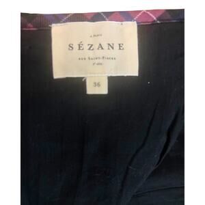 Chic mini skirt by Sezane. Features a dark green base with purple floral pattern. Perfect for stylish outings.
