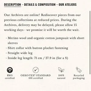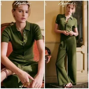 Chic olive green jumpsuit by Sezane. Features short sleeves and button-up front. Perfect for stylish comfort.