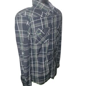Oakley Men's Black and Green Plaid Snap Button-Up Shirt Size S