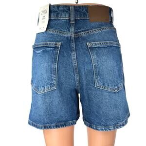 NEW Zara Women's Bermuda Blue High Waisted Boyfriend Mini Denim Jean Shorts Size 32