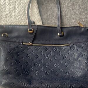 Elegant Louis Vuitton tote in navy. Features signature embossed leather. Ideal for any occasion.