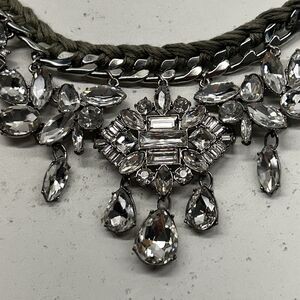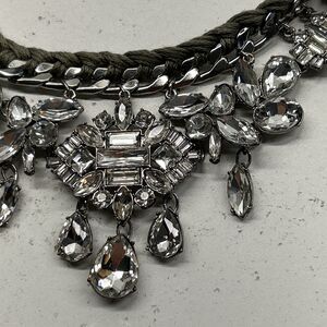 Vintage Parklane Nadia Statement Choker Silver Crystal Silk 20” NWT Necklace