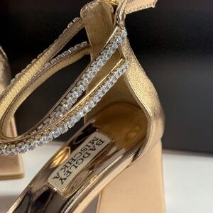 Badgley Mischka Lillie Crystal Dual-Strapped Block Heels in Champagne,VARIETY