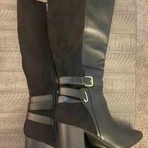 Step out in style with these chic black heeled boots. Featuring a sleek design and buckle detail, they are perfect for any occasion.