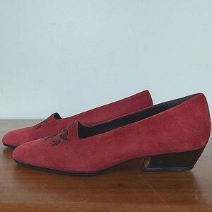 Vtg burgundy Italian suede embroidered loafers | narrow EU 35
