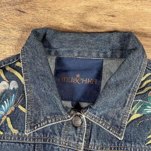 ANUSCHKA HAND PAINTED WOMEN'S LARGE BLUE JEAN FLORAL ART DENIM JACKET
