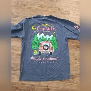 Women's long sleeve t-shirt by Simply Southern. Size medium and in excellent condition. Front, back, and sleeve detail in a cute outdoorsy/adventure print. From a clean and smoke-free home.