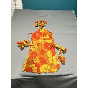 NWT Faithfull The Brand Orange Tropical Floral Halter Dress 4