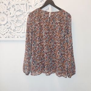 Northern Reflections Sheer Ditsy Floral Long Sleeve Pullover Blouse XL