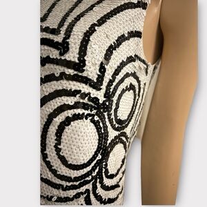 Rachel Zoe Sequin Shift Black White Graphic Sleeveless Crew Eyelash Dress Sz2