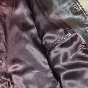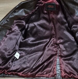 In pre-owned condition, a couple of stains and a scuff on sleeve, Brown Chocolate, Pebbled and smooth leather, Button front closure, Fully lined, Black slit, Boho Hippie 70's Elevate your style with this classic brown leather jacket. Perfect for any occasion, Oscar Leopold Cuir Leather Chocolate Brown Boho Hippie 70's Jacket, Size L.