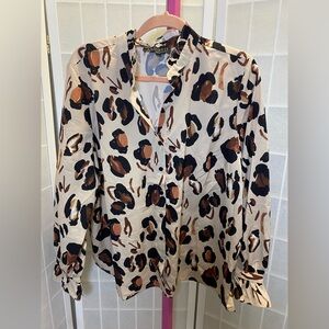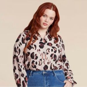 NWOT Eloquii Leopard Print Blouse Printed Button Down Shirt With Ruffle Neck