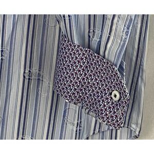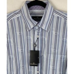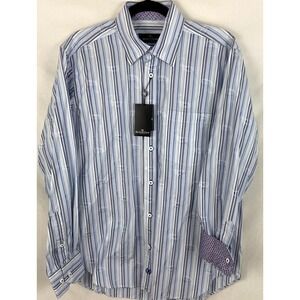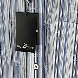 NWT Bugatchi Men Shirt Blue Black Paisley Striped Long Sleeve Flip Cuffs Med New