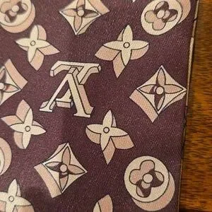 LV bag or hair scarf in brown pink red and other colors double-sided. Chic and versatile. Please feel free to ask questions or request additional photos. Measures approximately 47" long. This is a fashion scarf.