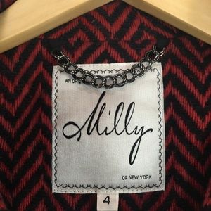 Milly New York Chevron Red Black Button Up Coat Jacket Women’s Size 4. Excellent Condition. Clean and comes from smoke free home.