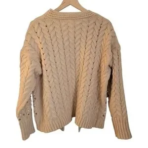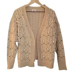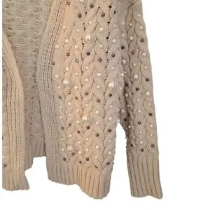 Bibi Boutique Brand Twisted Knit Open Cardigan With Pearls M