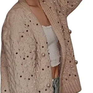Bibi Twisted Knit Open Oversized Chunky Cardigan With Pearls!