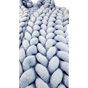 Chunky Knit Blue Open Front Cardigan Sweater Women Size Large Braided Style