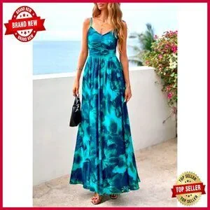 Floral Maxi Dress Boho Spaghetti Strap Mesh Sundress Elegant Party Beach Wear