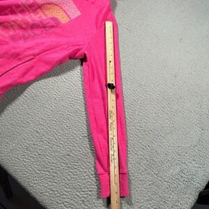 The North Face Hoodie Womens Medium Pink Spell Out Logo Fleece Lined Drawstring.