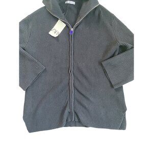 Zara Women's Large NWT Zip Up Ribbed Knit Cardigan Heavy Weight True Black