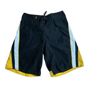 Quiksilver Men’s Board Shorts Size 31 Black Yellow White Y2K Surf Trunks