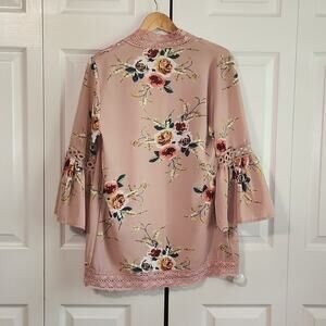 Dusty Rose Floral Kimono Size SM Bell Sleeves Lace Fairycore Girlhood Feminine
