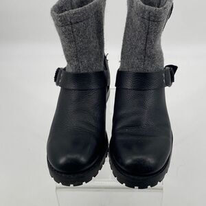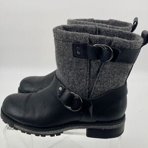 Woolrich Leather Wool Moto Booties Buckles Lug Sole