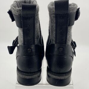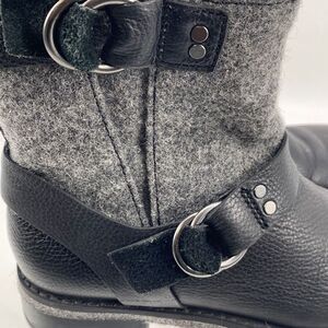 Woolrich Leather Baltimore Harness Wool Booties Double Buckles Lug Sole Grey 6.5