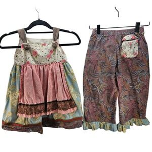 Matilda Jane Girls Dress Pants Outfit Floral Roses Patchwork Ruffles
