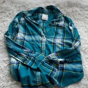This is a very soft flannel and a beautiful turquoise/teal color gently preowned and in great condition. Thanks for looking and please let me know if you have any questions the size is small.