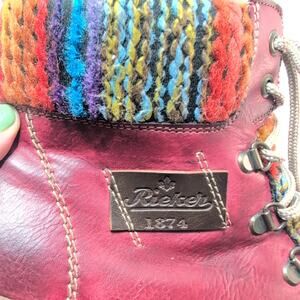 Rieker Felicitas Ankle Boots Red Sherpa Lined Side Zip Lace Up Women's 9