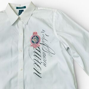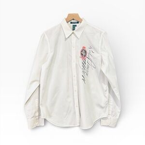 Vintage Ralph Lauren Cotton Long Sleeve Embroidered Crest Button Down Top Large