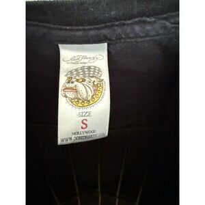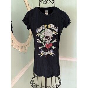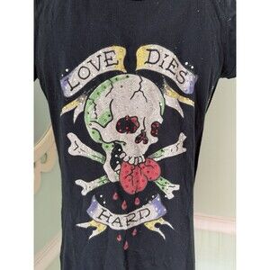 Ed Hardy Y2K 2000s Rhinestone Skull Bling Black womens T-Shirt Love Dies Hard S. Condition is Pre-owned - Excellent. Shipped with USPS Ground Advantage.