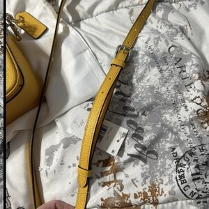 Elevate your look with this vibrant yellow Coach cassie 19 crossbody. Sleek design with adjustable strap. you get the leather Crossbody strap and the bag in the dust bag that's it no metal chain.