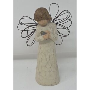 Capture the gentle essence of comfort with this Willow Tree Angel of Healing figurine. Her serene posture, with hands cradling a small bird, evokes a sense of peace and restoration. The textured, cream-colored robe flows gracefully, while the delicate wire wings add an ethereal touch. This heartwarming piece from DEMDACO, designed by Sue Lordi, is a perfect symbol of hope and well-being. Display this angel on a bedside table, a mantelpiece, or a shelf to bring a calming presence to any space, offering solace during times of recovery or simply as a reminder of gentle care.
