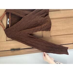 Excellent condition ASTR The Label Metallic Sequin Surplice Cable Stitch Sweater in Copper Brown Women’s size Medium