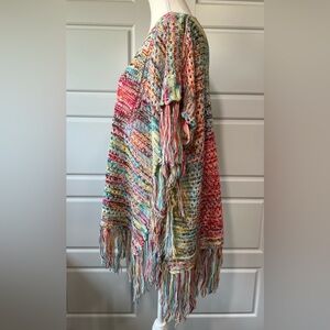 Keywords: crochet tunic, fringe top, bohemian top, festival top, beach cover up, colorful top, open weave top, summer tunic, boho chic, vacation wear, resort wear