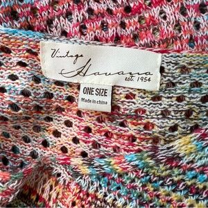 Vintage Havana Colorful Crochet Fringe Tunic Top Bohemian Beach Cover Up OS