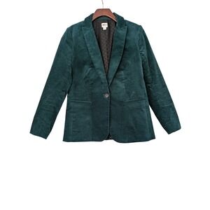 J. Crew Velveteen One-Button Blazer Womens Size 4 Green NWtT $198 BC800