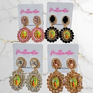New Beautiful Virgin Mary Rhinestone Peach Dangle Earrings Virgen de Guadalupe